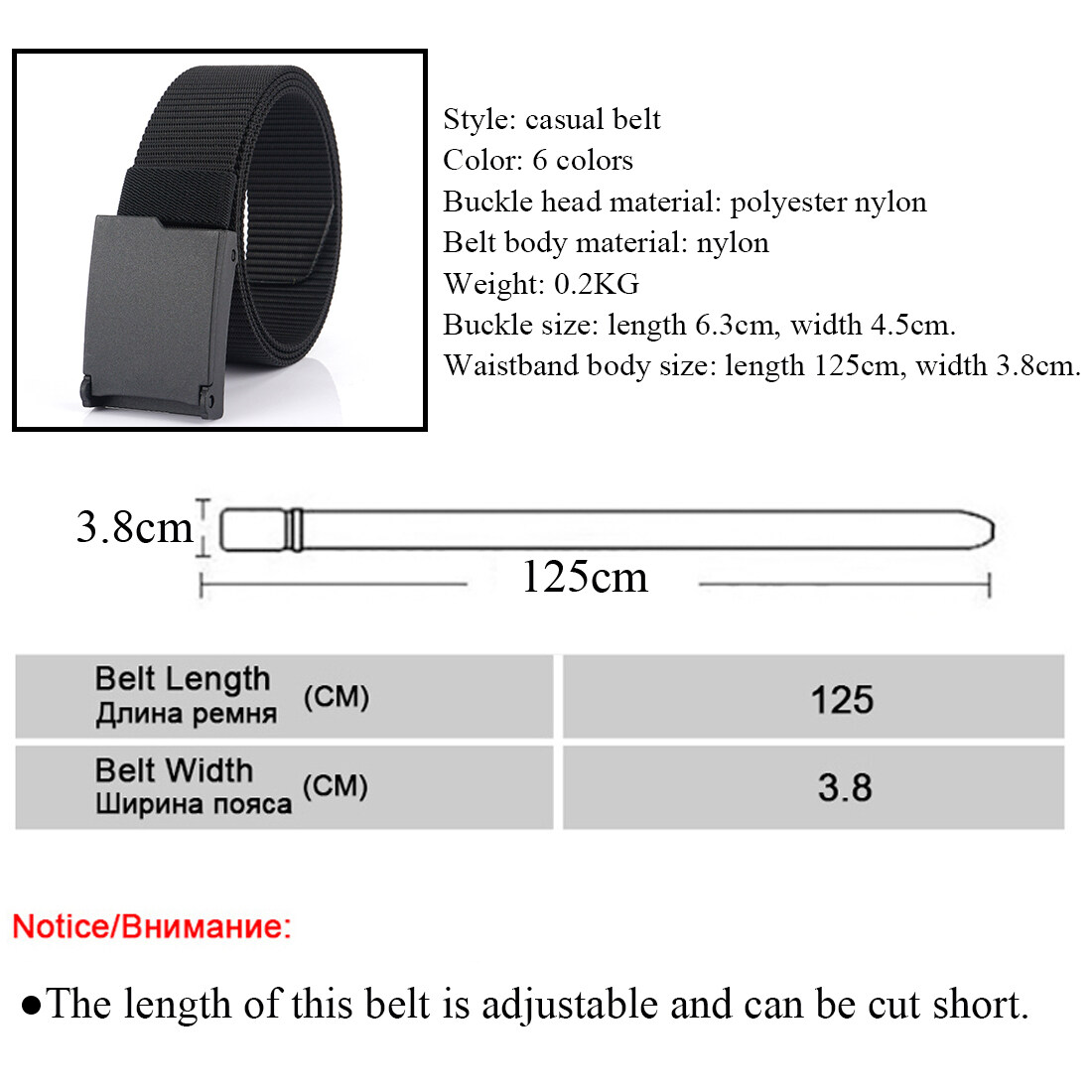 Waistband body size: length 125cm, width 3.8cm.