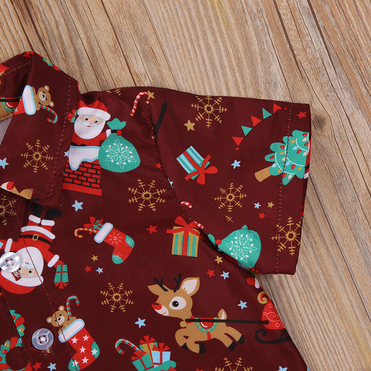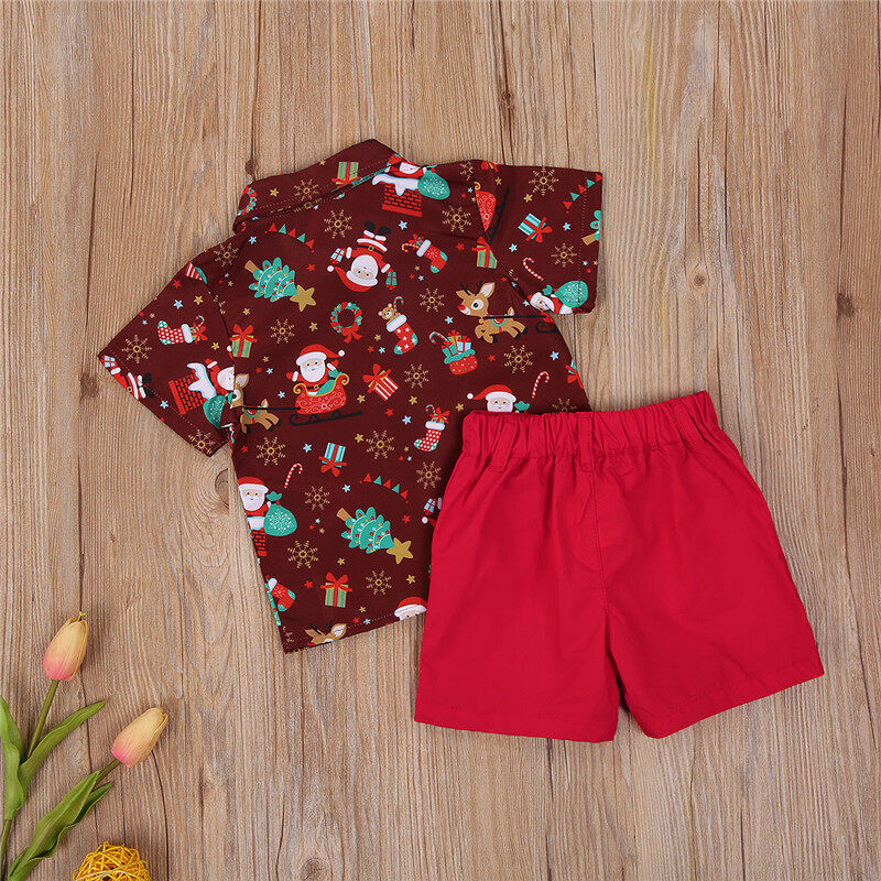 Summer Children’s 2-piece Suit, Solid Color Short Pants, Christmas Themed Print Polo Neck Short Sleeve Casual Suit