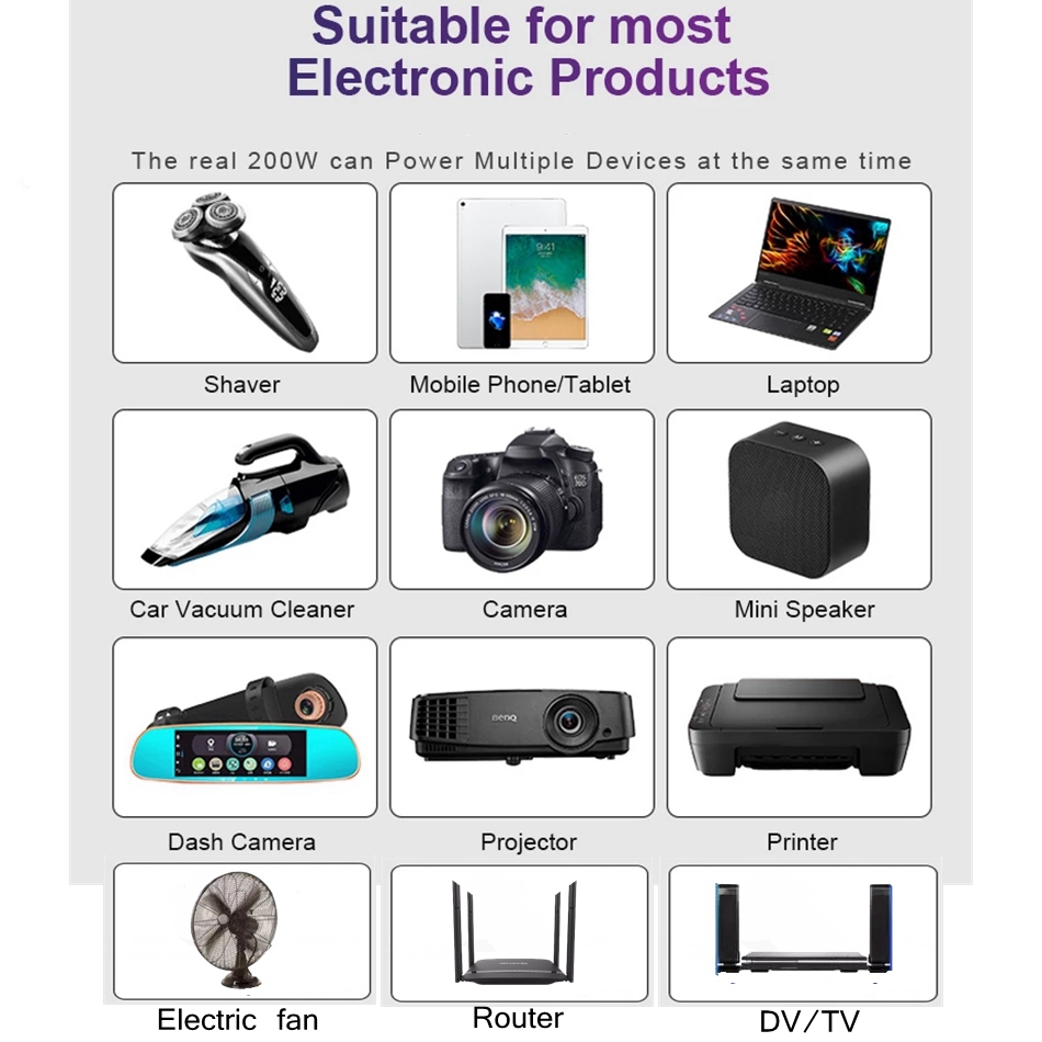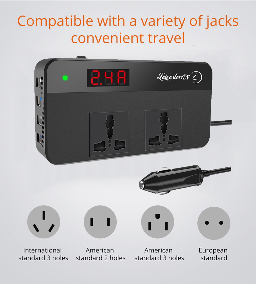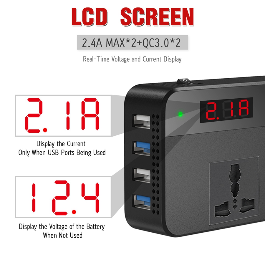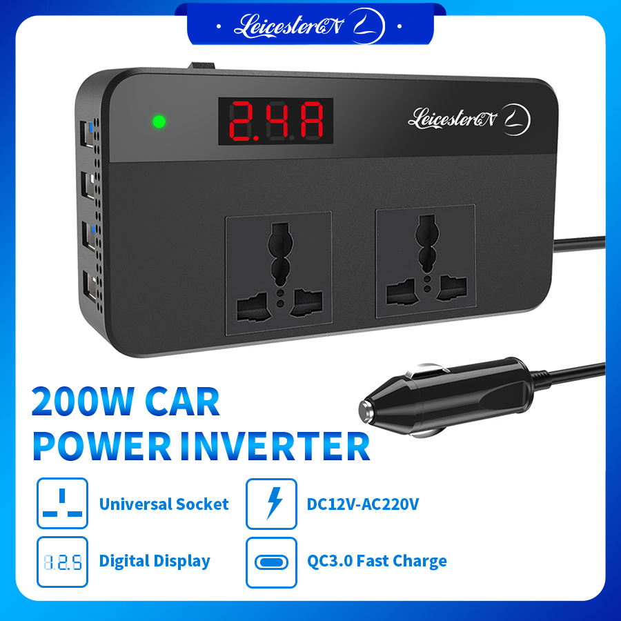 【Upgraded】LST 200W 220V Car Power Inverter Original DC 12V to 220V AC Car Converter 2 AC Outlets 4 USB Ports Adapter(2*QC3.0 Fast Charging Port) DC to AC Inverter with Digital Display