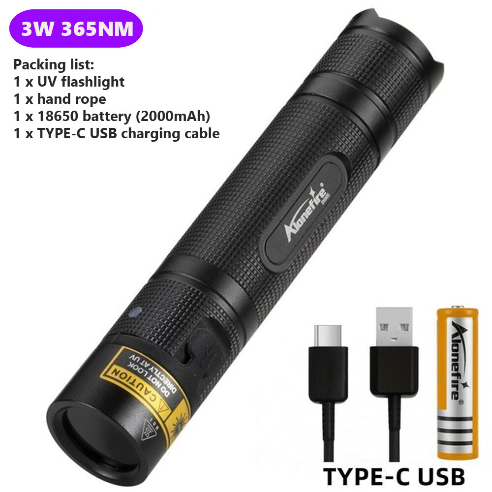 AloneFire SV005 UV Flashlight 10W 365nm Ultra Violets Ultraviolet Invisible USB Torch Black Light Pet Urine Stains Detector Scorpion