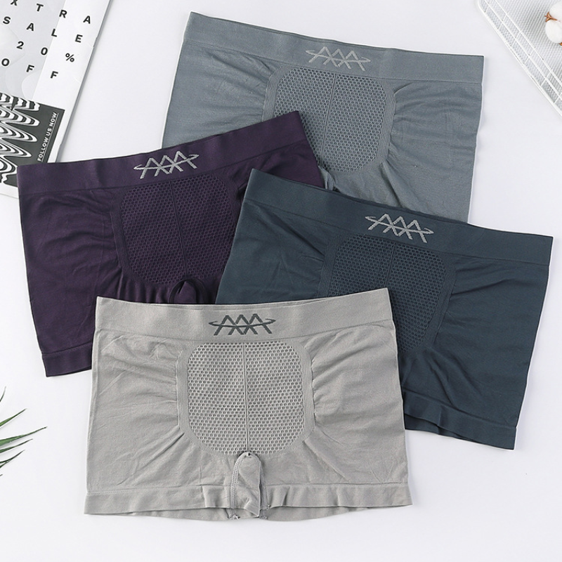 IELGY【40-75KG】men's underwear mid-waist four-corner high-elastic breathable sweat-absorbent mid-waist seamless 5D honeycomb boxer briefs