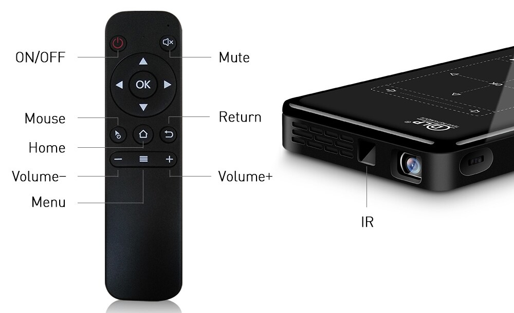 The projector features a wearable,coated glass lens and high quality LED bulb,