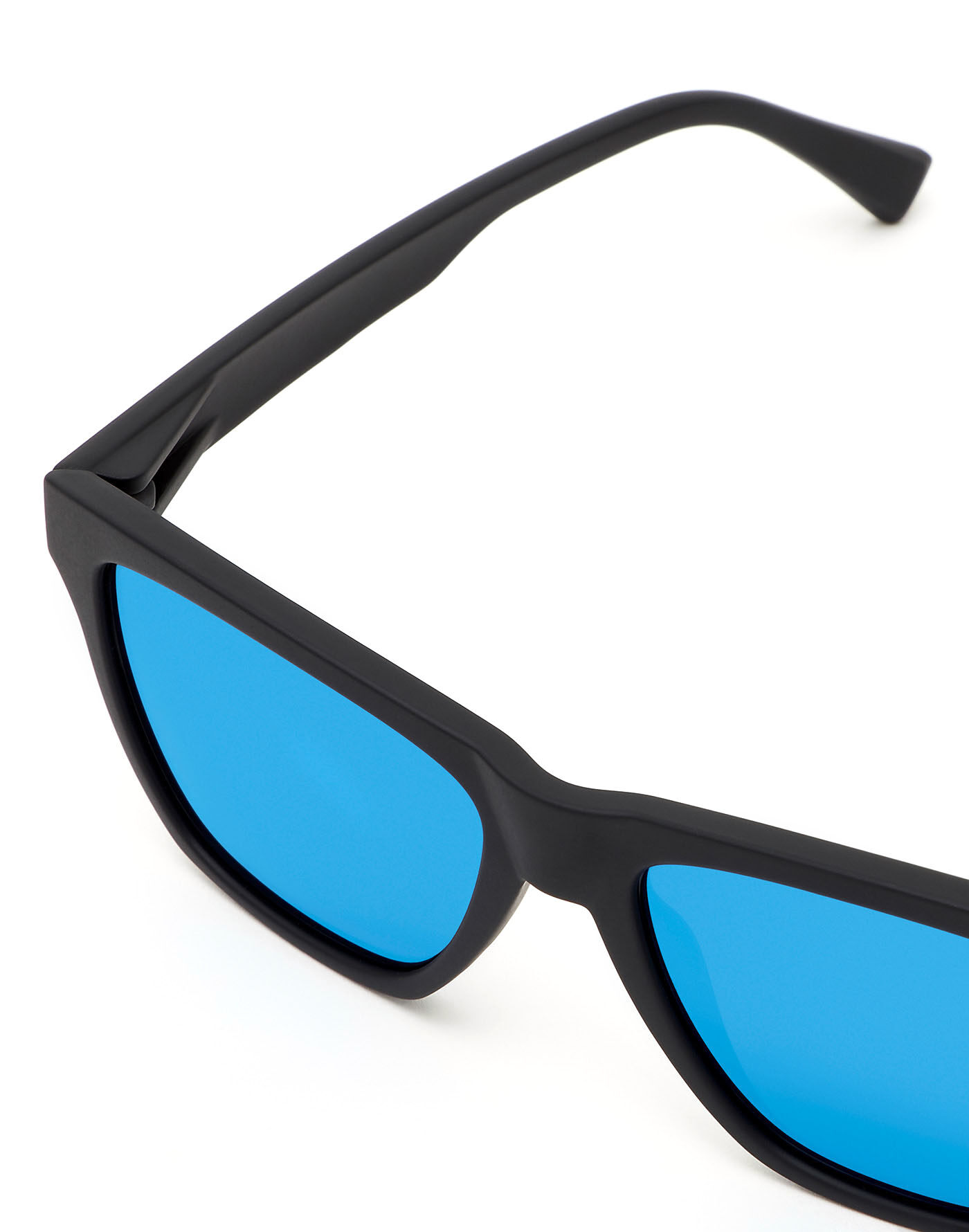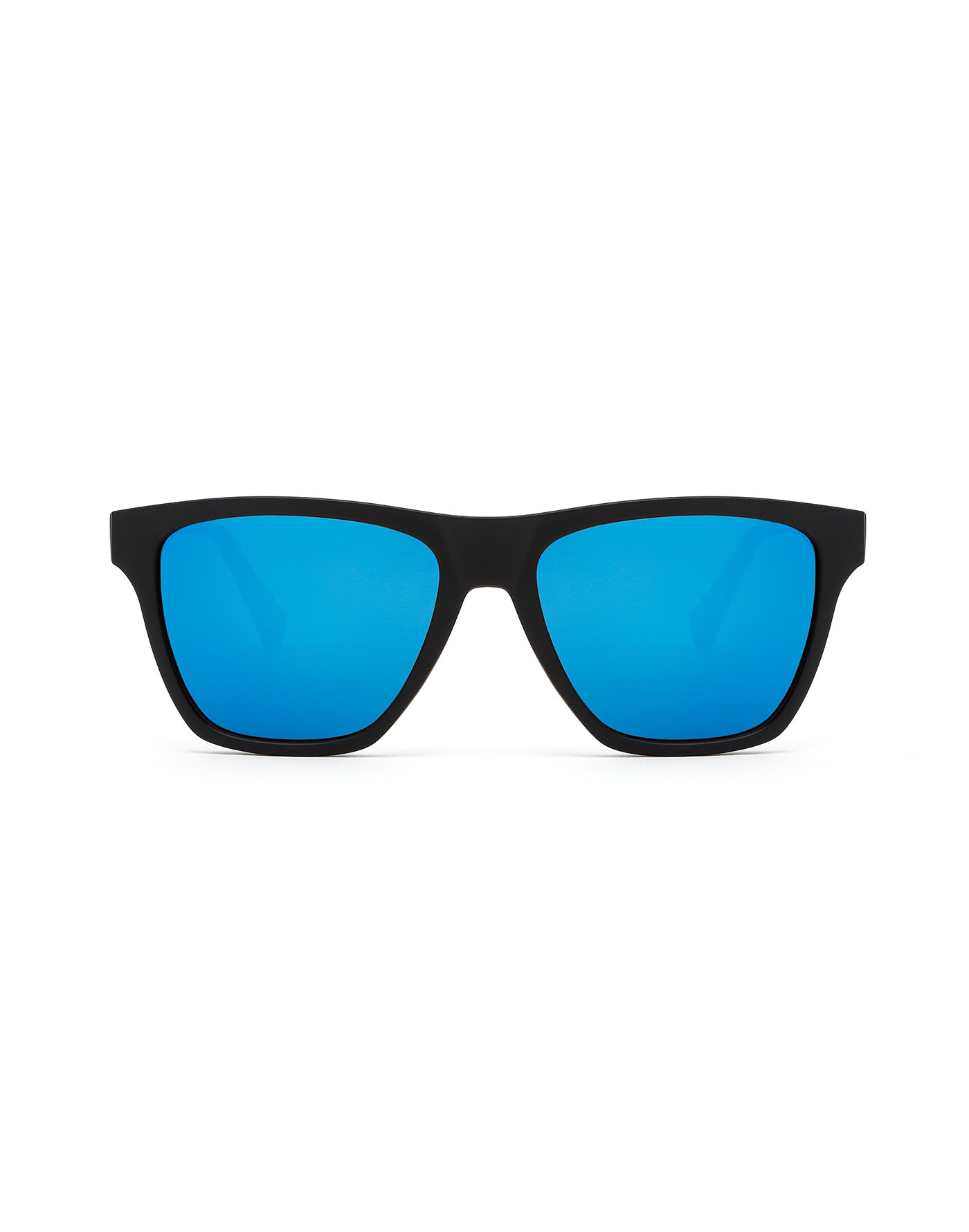 Black, rubber-finish frame and mirrored blue lenses.