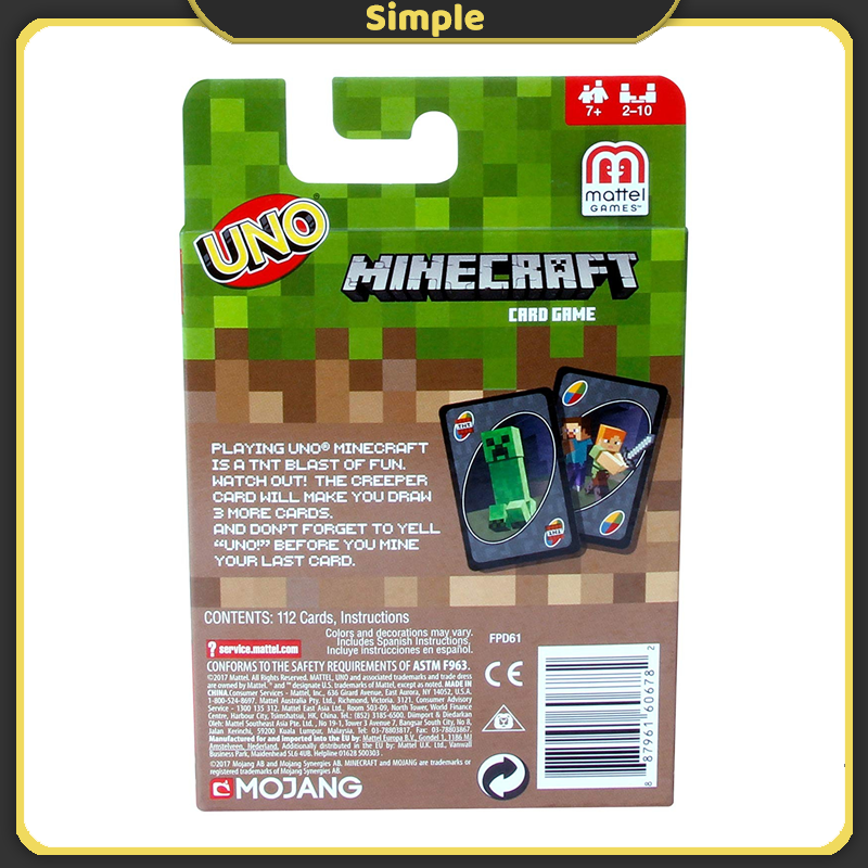UNO Minecraft Board Game Family Leisure Entertainment Game Friends Gathering Multiplayer Board Game