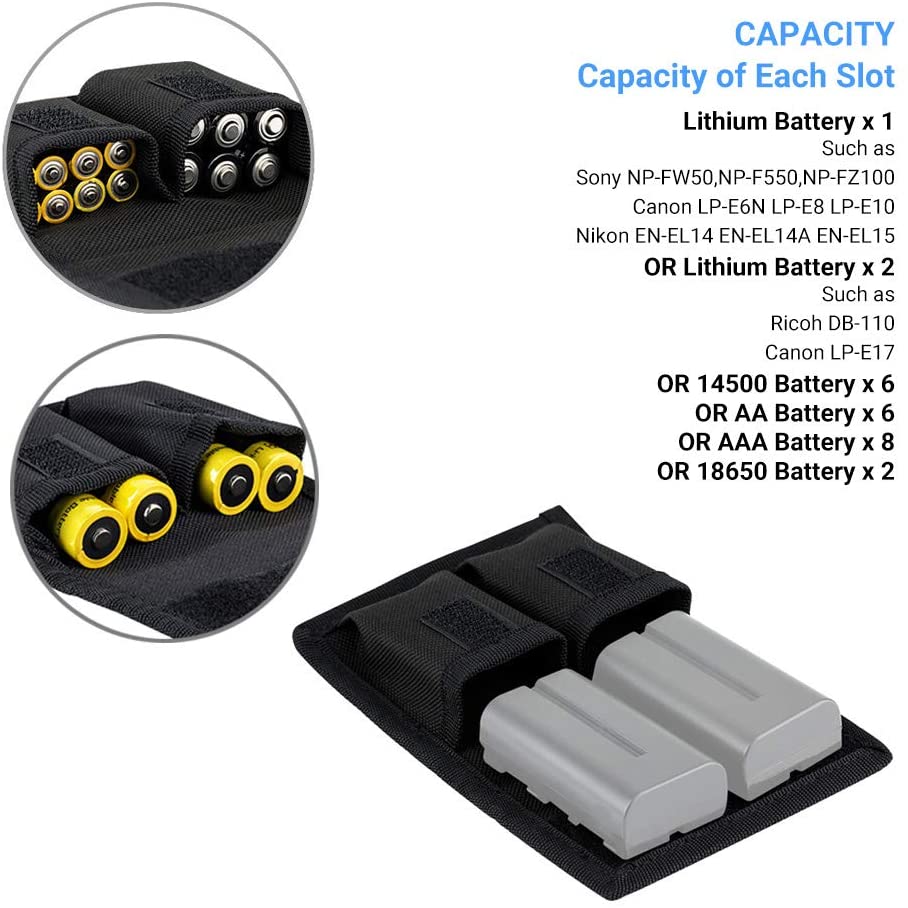 JJC Camera Lithium Battery Pouch 2A/3A/14500/18650 Battery Bag with Memory Card SD/CF/XQD Card Zipper Pocket for Sony NP-F550 NP-FW50 NP-FZ100 Canon LP-E6 LP-E8 LP-E10 LP-E12 Polyester Material