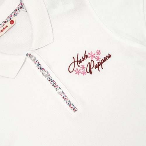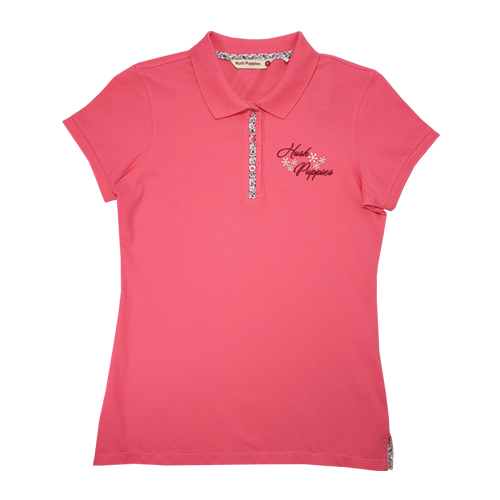 HUSH PUPPIES LADIES PIQUE POLO WITH EMBROIDERY |100% COTTON| #HLP059599WHT/PNK