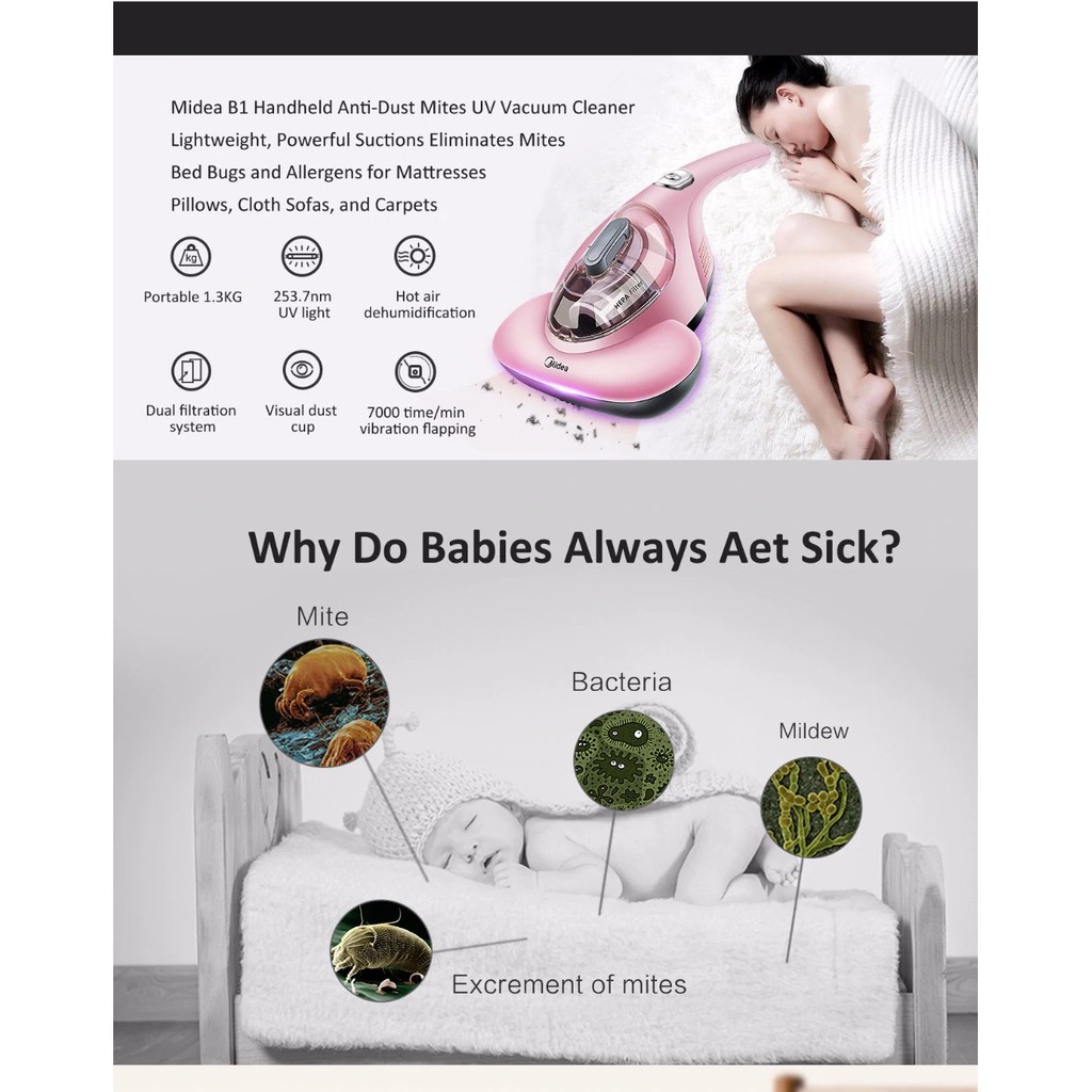 Midea B1 UV Anti Dust Mites Handheld Portable Vacuum Cleaner Hepa Powerful Suction Heat Application Dehumidification
