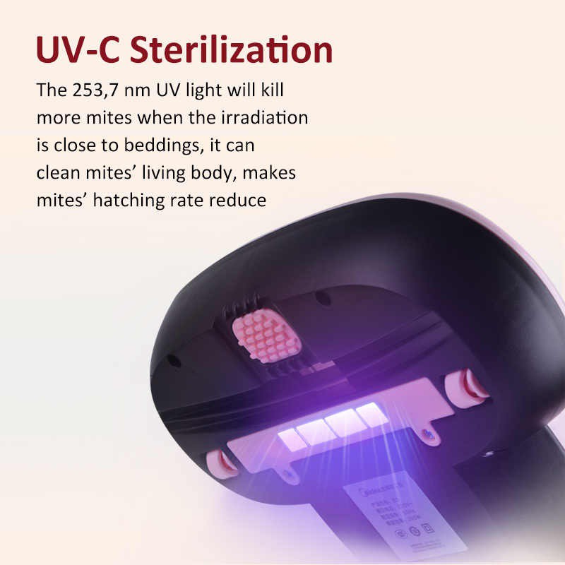 • The 253,7 nm UV light will kill more mites when the irradiation is close to beddings, it can clean mites' living body, makes mites' hatching rate reduce