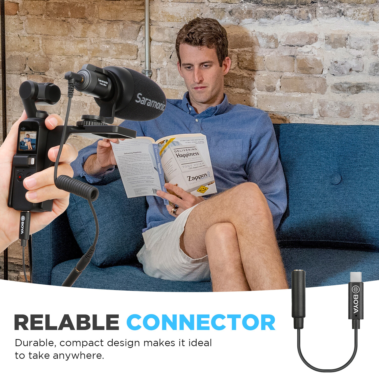 BOYA BY-K6 3.5mm TRS Female to Type-C Male Audio Adapter for DJI OSMO Pocket