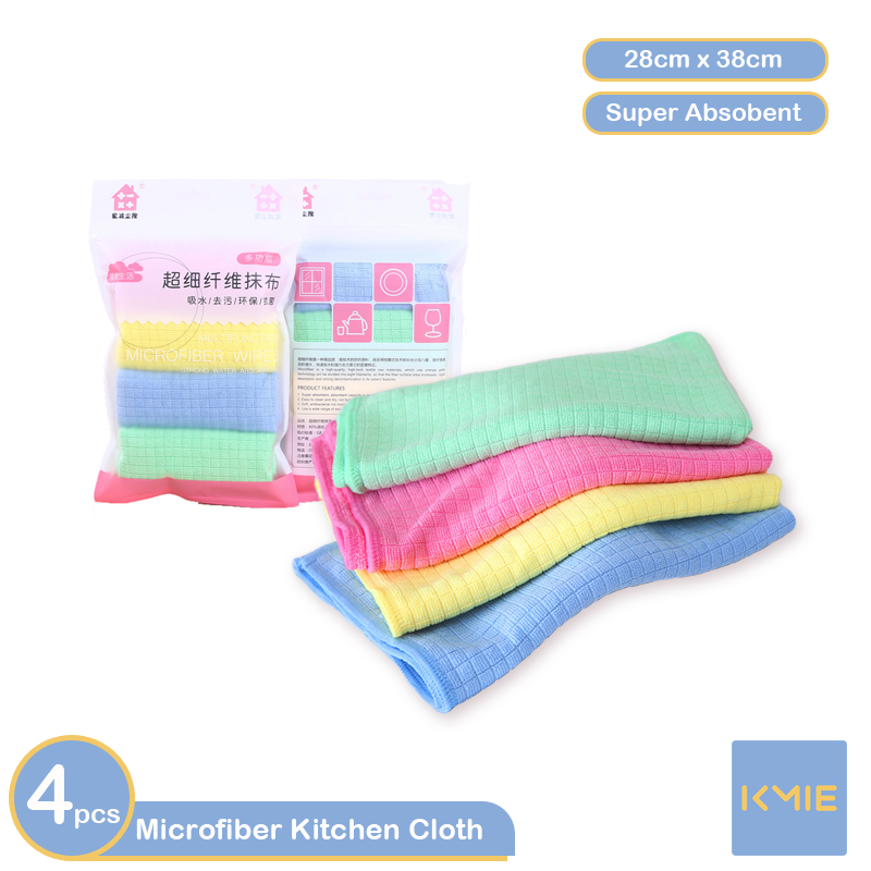 4 Pieces Pack Microfibre Kitchen Cloth All Purpose Towel Easy Wash Super Absorbent Easy Clean and Dry Soft Antibacterial Home Kitchen Bathroom Mirror Glass Family Use