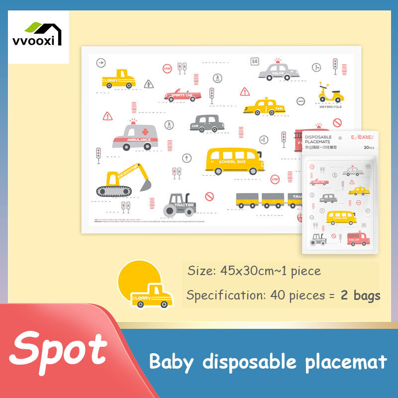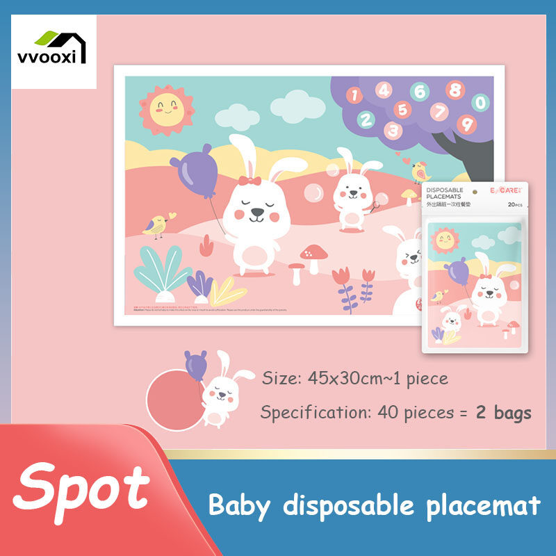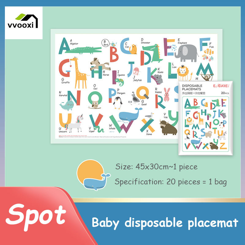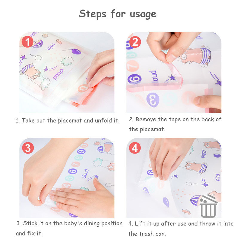 20-piece Baby Disposable Placemats, Portable Kid's Table Mats with Strong Adhesive Strips, Waterproof and Oil-proof Tableware Pads