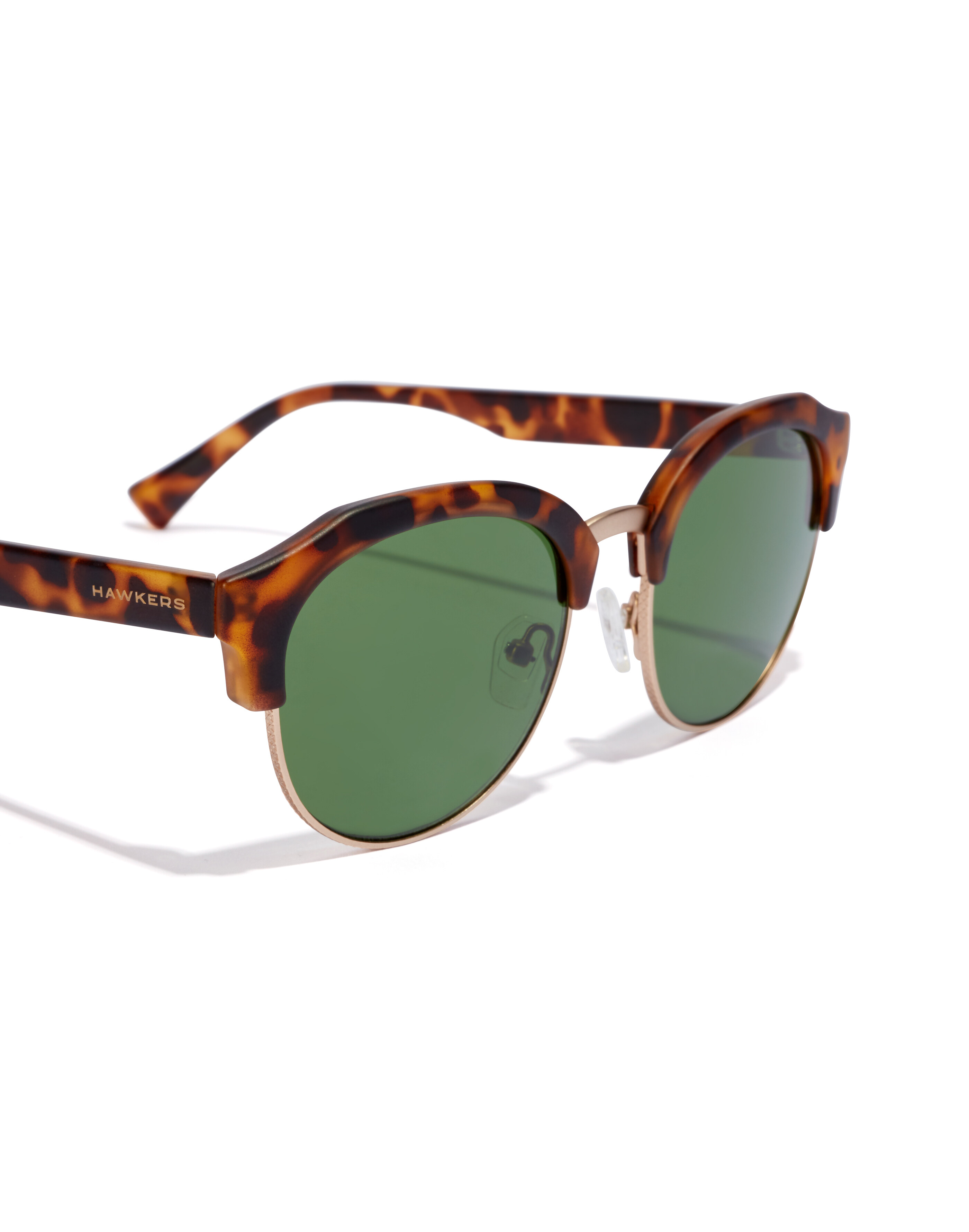 Antislip, antiallergy silicon nose pads, fixed with an exclusive Hawkers emblem in stainless steel. Nose pads designed with distinctive geometric lines