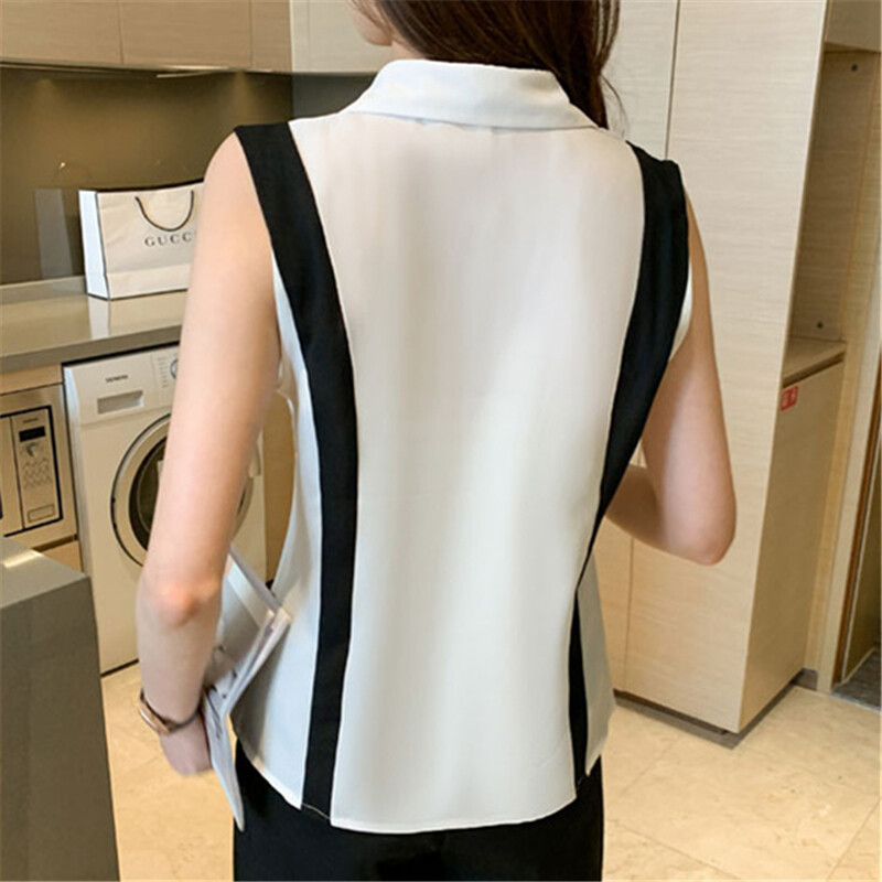 Sleeveless Shirt for Women Plus Size Chiffon Blouse Polo Collar Office Ladies Tops Summer Shirts