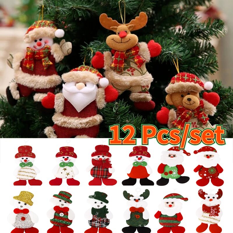 12Pcs Christmas Bells Ornaments / Snowman Xmas Tree Hanging/ Christmas Cloth Doll Pendant / Christmas Tree Ornament Holiday Decorations