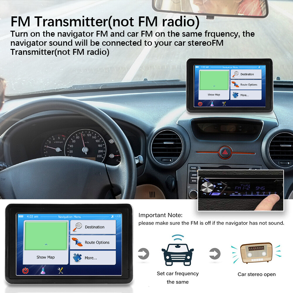 Features:1. [Lifetime free map update] Pre-installed detailed latest maps in 2022, lifetime free updates, maps of the purchased countries are pre-installed before the product is released, including the United States, Canada, and Mexico. If you want to update the map or need maps for other countries, please contact us and we will give you the download address and guide. (The operation changes the country according to the corresponding sales country, if you have any questions, please contact the development)2, [Performance upgrade] The GPS satellite navigation system is equipped with a high-performance CPU, uses a 1200mah polymer battery, built-in 8GB ROM 256MB RAM, supports a maximum of 32G expansion memory, and has enough space for you to store maps and data. Equipped with car charger, USB cable (can be charged indoors), suction cup bracket, back clip, instruction manual (excluding SD/TF card)3, [Intelligent voice broadcast and 7-inch touch screen] GPS navigation system has a voice navigation system (multi-language version), comprehensive voice prompts and safe navigation direction guidance, inform speed limit and estimated time of arrival, intelligent error correction. Let you reach your destination faster, safer and more accurately. 7-inch high-resolution touchscreen with 800 x 480 resolution, sharp and responsive4,【Best Navigation】You can choose from more than 30+ languages voices that will speak the directions one by one, so you don't have to stare at the GPS screen all the time. FM boost volume function (without radio): It can transmit the navigation audio to the car stereo, increase the volume of the navigation radio, make it clearer. Make your driving safer, reduce fatigue driving, stay away from fines and enjoy driving.5, [Multi-function] (1) Fast and economical intelligent route planning, (2) Fast and accurate GPS tracking (3) Provides 7 vehicle modes support, car, truck, bicycle, bus, ambulance, taxi, ( 4) Support zip code, address, POI and coordinates, (5) Broadcast of street name, current speed, lane guidance and estimated time of arrivalFunction parameter:Display: 5-inch high-definition TFT touch screenRAM: 8GBResolution: 800*480Cache: 256MExpansion card slot: maximum support 32G TF cardStandard function: AVI/MP4/3GP/MPG/MP3/WMA/FM transmitter/gameBattery: Polymer A-gauge lithium battery 1200MAHProduct packaging:Navigator, cigarette lighter cable, usb cable, suction cup bracket, manual