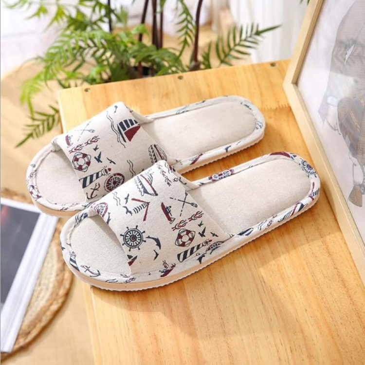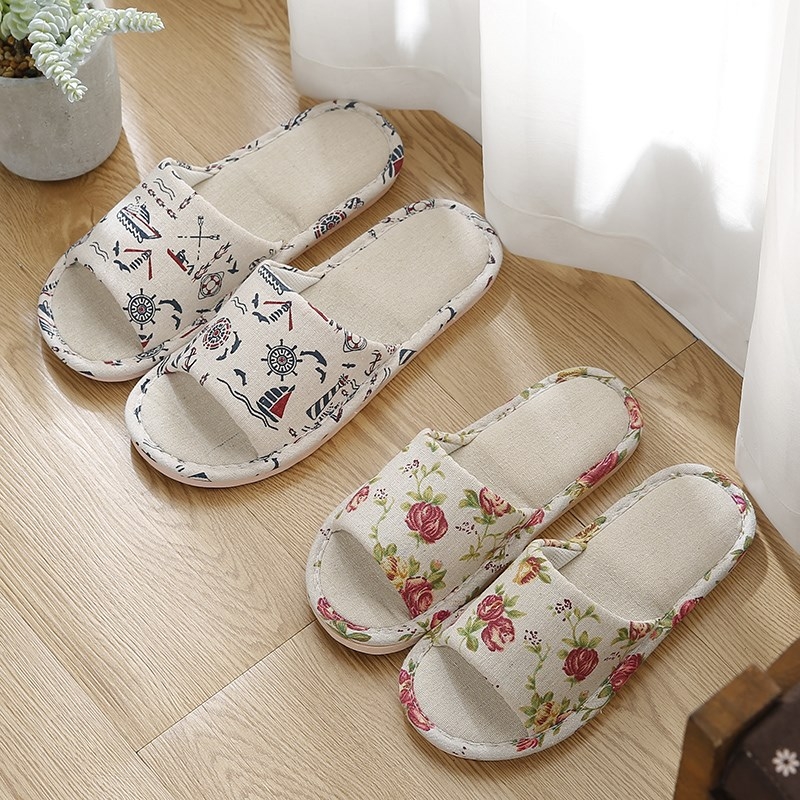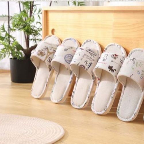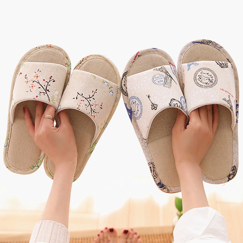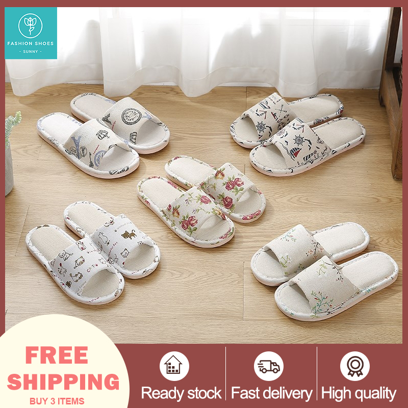 【SG Seller】Women Men Couple Anti-Slip Cotton and Linen Soft Bottom Slipper Home Indoor Slippers Summer Open Toe Flip Flops Home Wood Floor Sandals