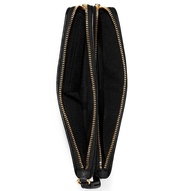 Interior features six credit card slots, full-length bill compartment, inside open pockets