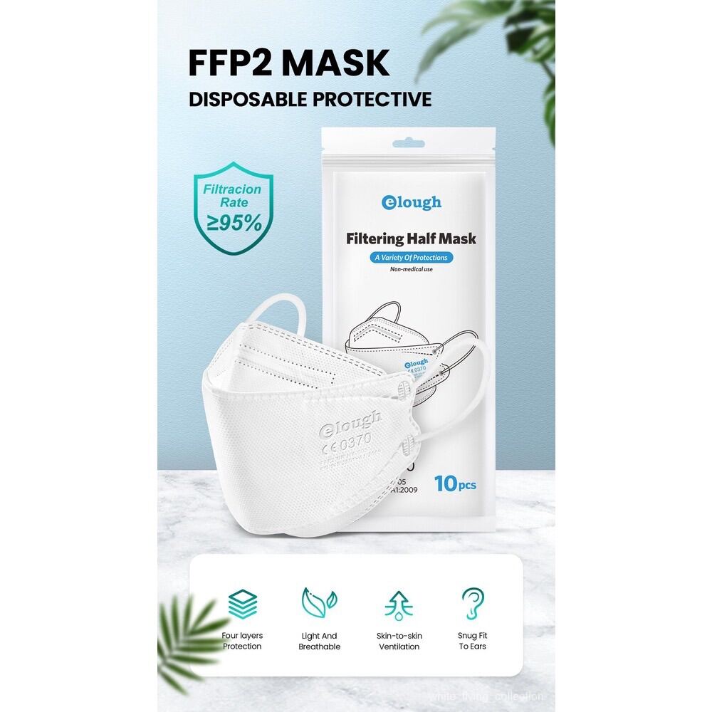 【READY STOCK】Elough kn95 FFP2 Mask Disposable Protective Mask Adult kn94 CE Authentication Designated mask for Euro travel