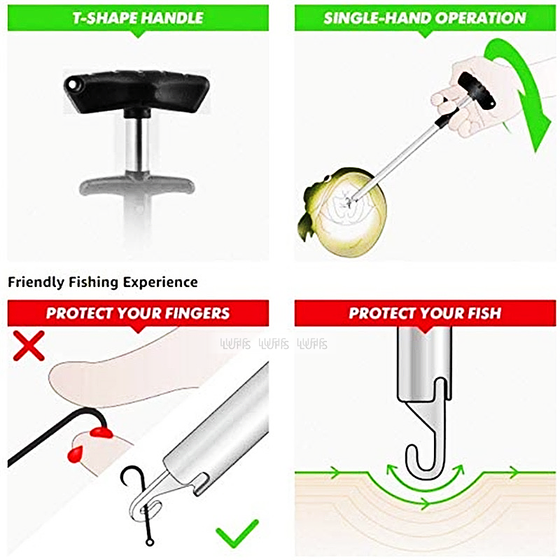 Squeeze puller handle makes fish hook removal in an easy operation.