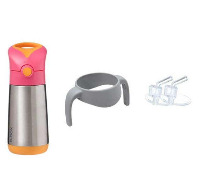 Clean modern design and big kid aesthetic. Available in six fab b.box colours. Kids love our easy drinking silicone straw top. Parents love no leaks in the bag (when the lid is closed). Replacement straw packs available, sold separately. When using to keep liquids warm - for best performance fill the stainless steel base with hot water for a few minutes to warm it before pouring water out - and filling with warm liquids.