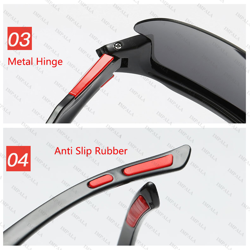 IMPALA PG2007L Fashion Photochromic Polarized Sunglasses Sports Style Eyewear Anti Glare Cycling Eyeglasses Elastic Frame UV Protective Sun Glasses with Box