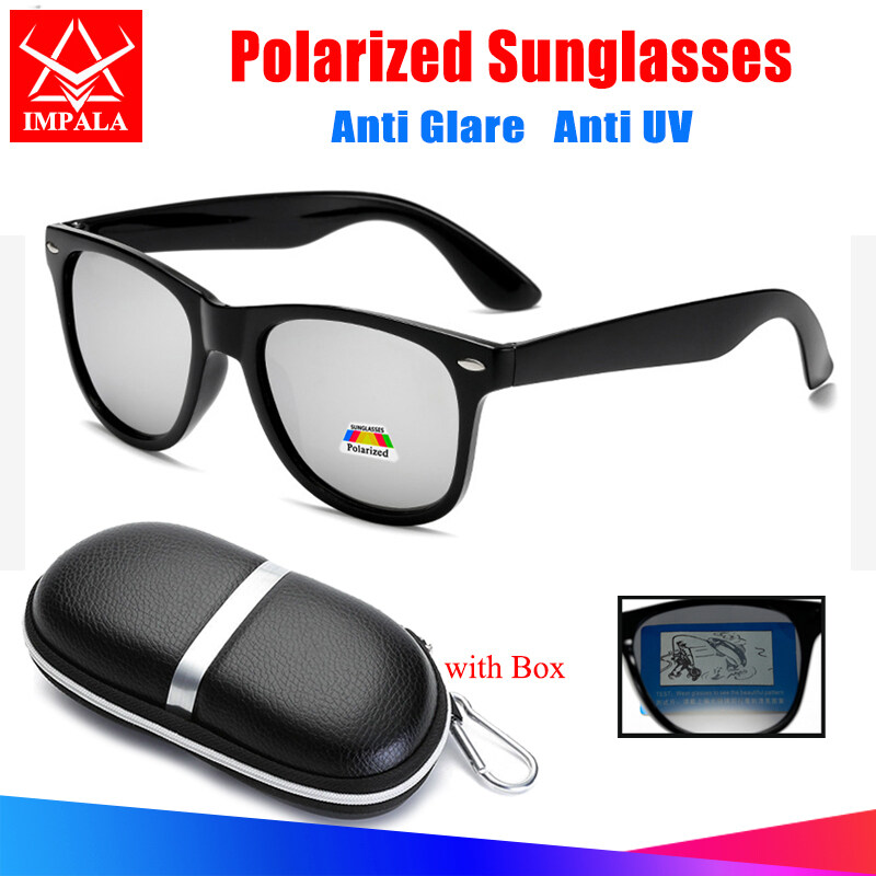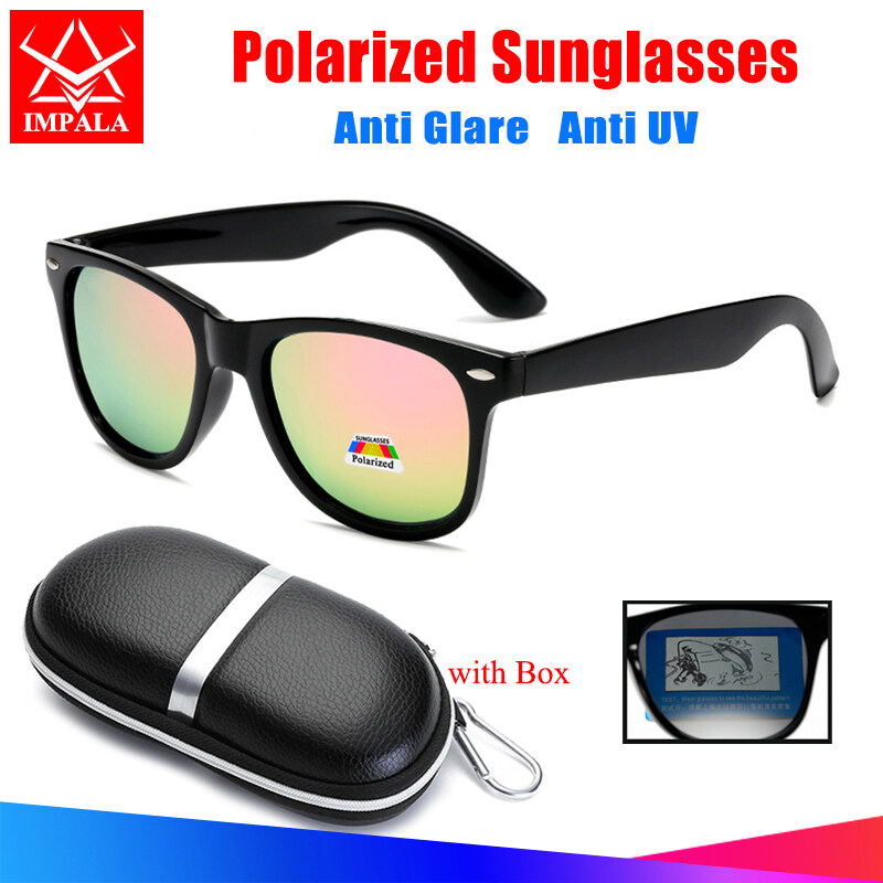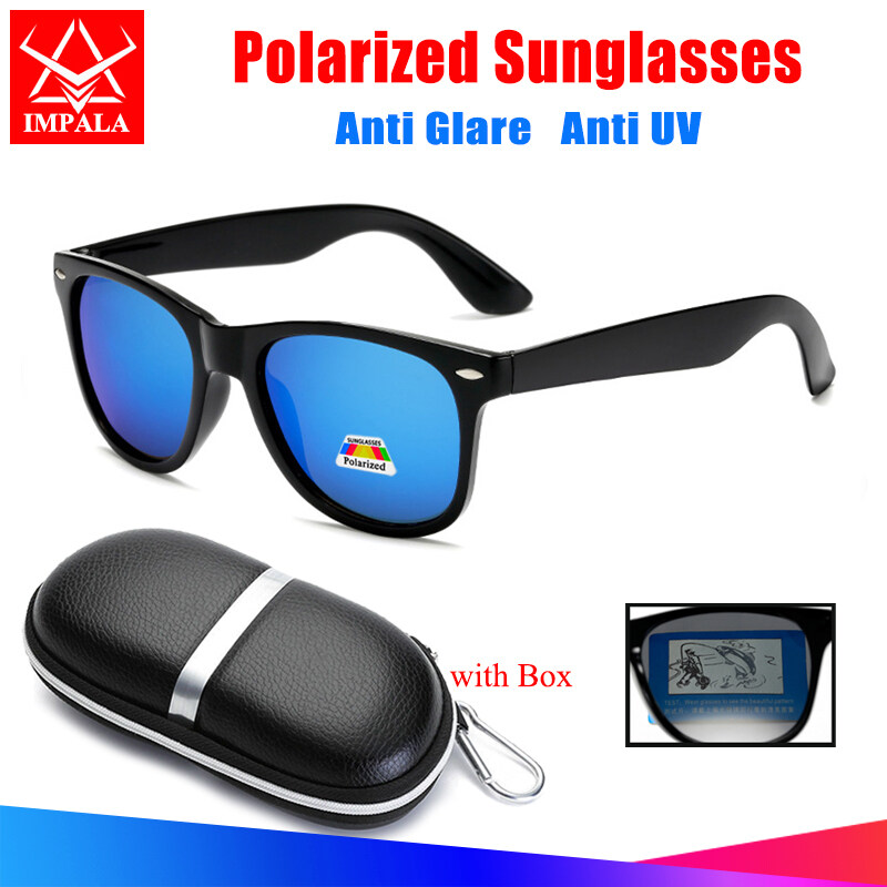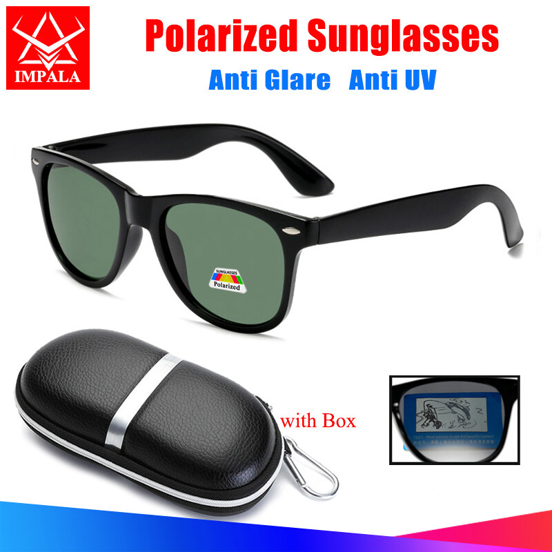 IMPALA PG2006L Fashion Polarized Sunglasses for Men and Women Classic Anti Glare Sun Glasses Driving Fishing UV Protective Black Shades Eyeglasses with Box