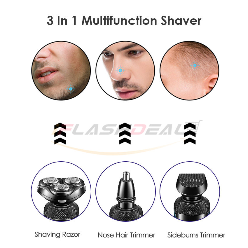 iFlashDeal Electric Shaver Rotary Razor 3 in 1 Facial Grooming Kit USB Rechargeable Beard Trimmer For Men Hair Cutter Machine Multifunctional Floating Razor Professional Electric Shaver For Men