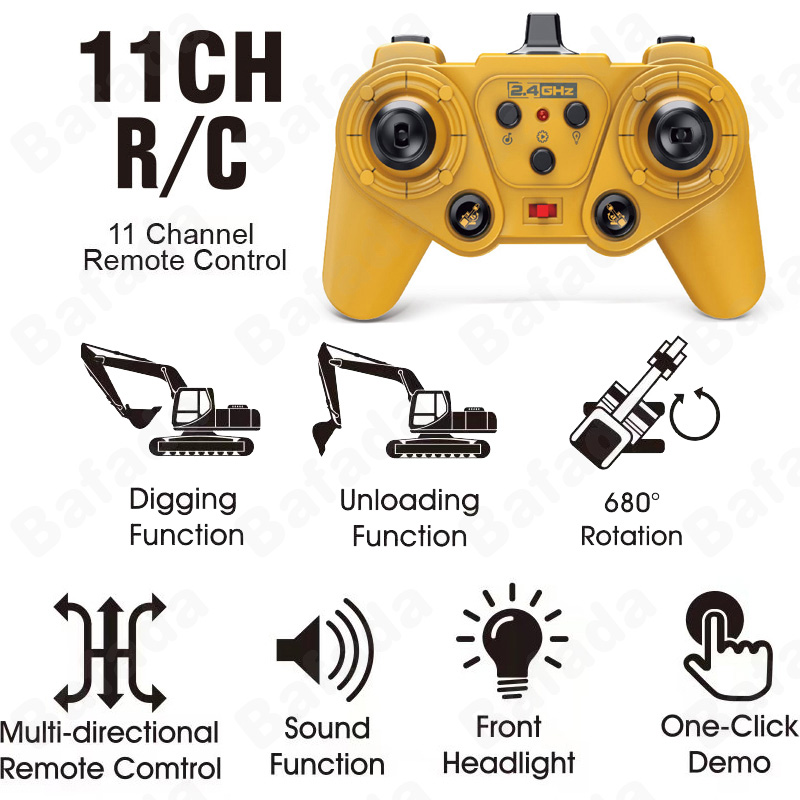 Bafada 1:20 High Simulation Remote Control Excavator RC Crawler Tractor Toy,270° Rotating Truck RC Car,6 Channel Construction Vehicle with Flashing Lights