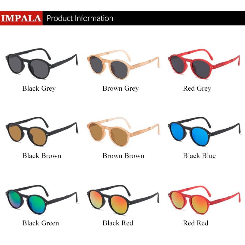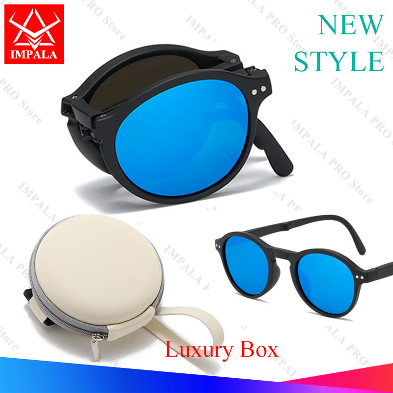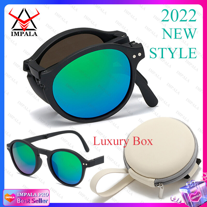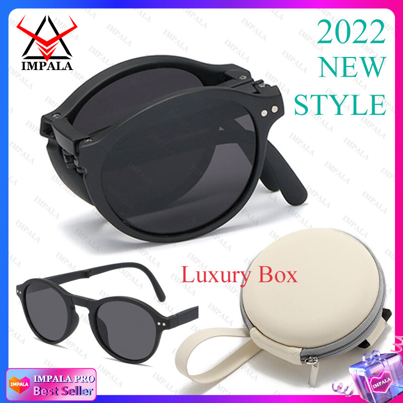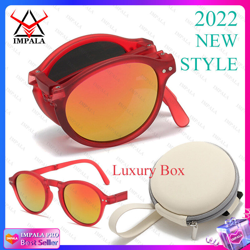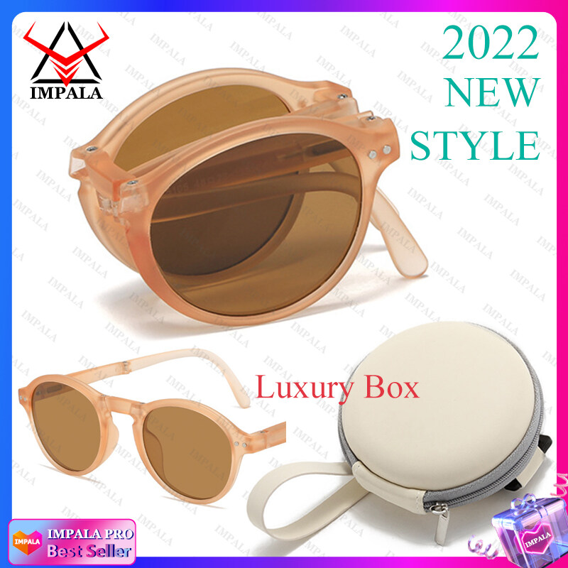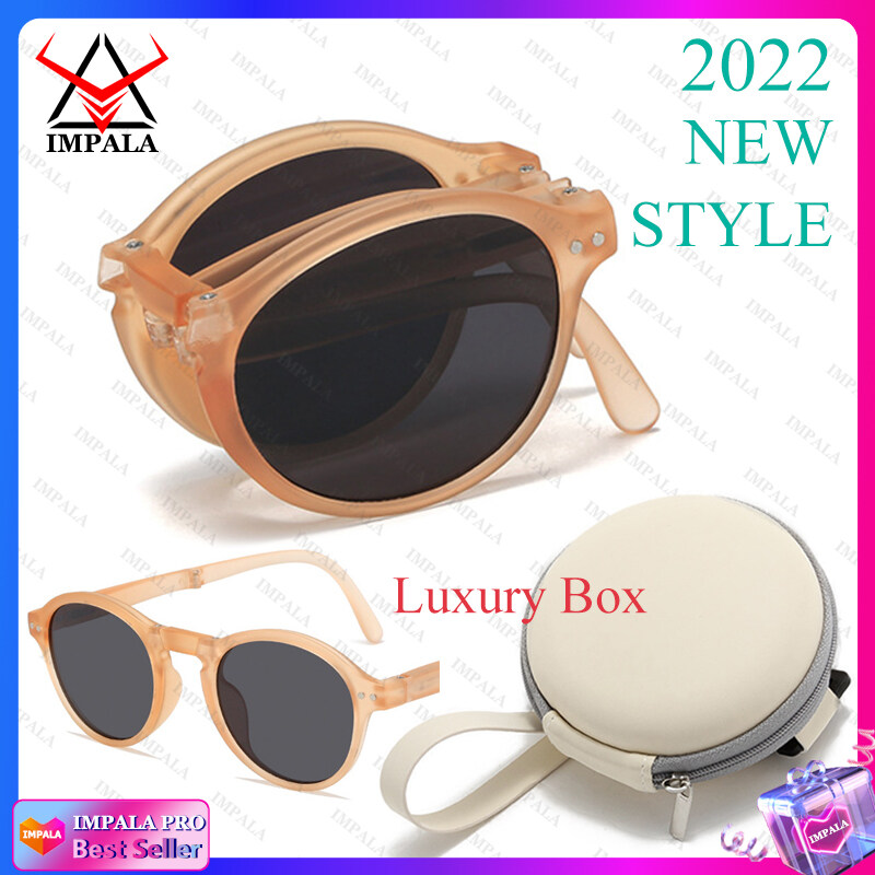 IMPALA QT2010Y Foldable Sunglasses with Luxury Round Case Anti UV Anti Glare Sunglasses for Women UV400 Protection Travel Sunglasses HD Lenses Exquisite Packaging