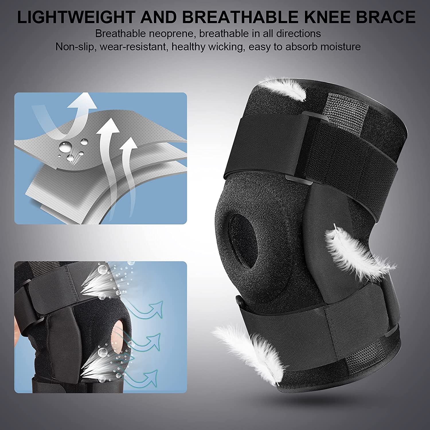 Exclusive Patent: Knee Brace with Side Spring Stabilizers & Patella Gel Pads. Strengthen Joint Support and Reduce Knee Load.