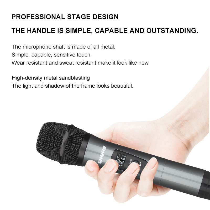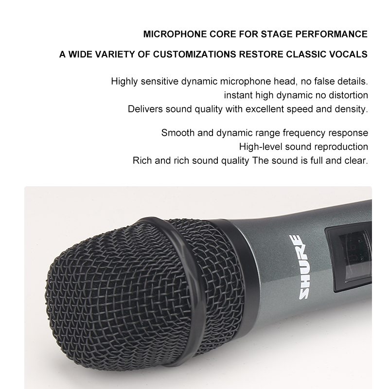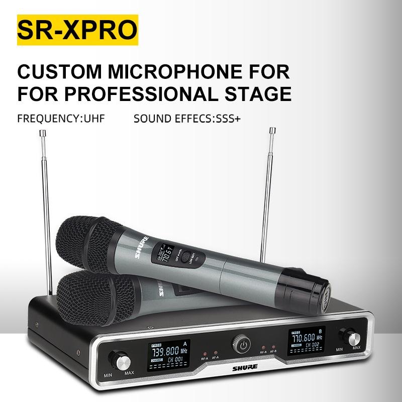 SHURE SR-XPRO UHF Wireless Dual Microphone Dual Microphone SM58 Sturdy and lightweight aluminum body. Receive signals from 800HMz distance, a new set of high frequency wireless microphones.