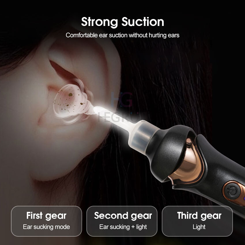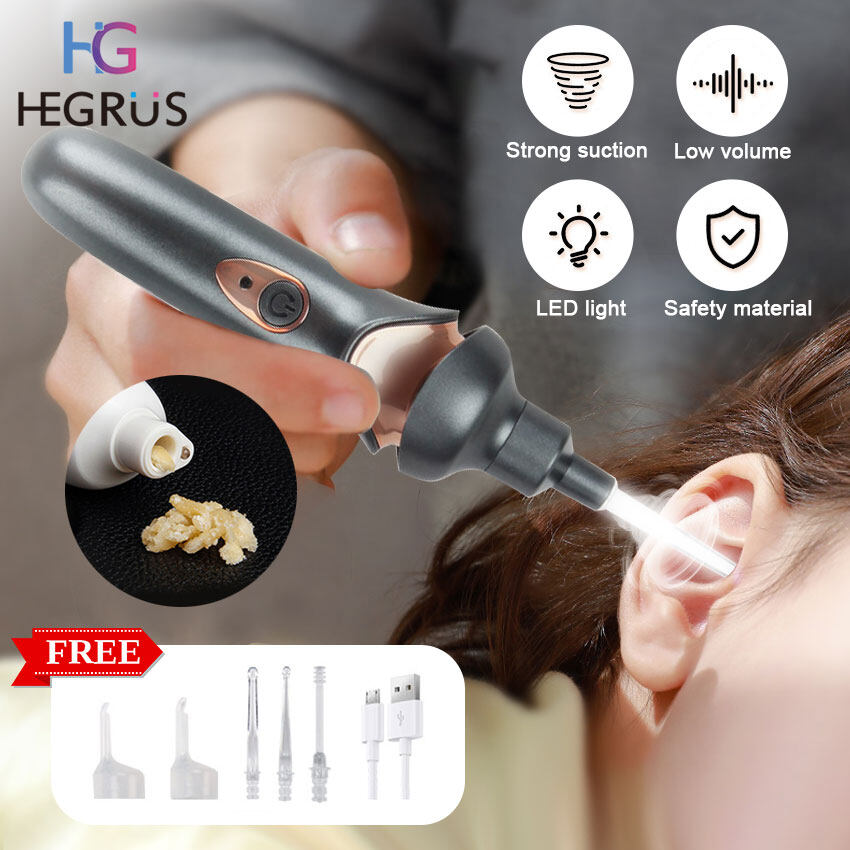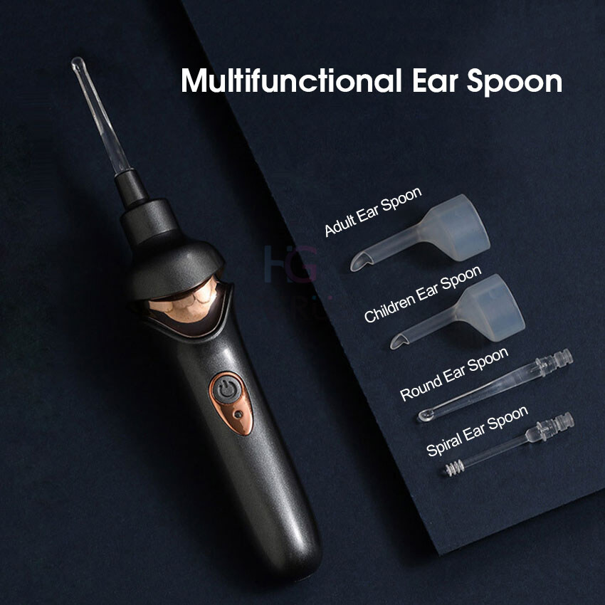 HEGRUS earwax remover Electric Ear Cleaner LED Light Painless Cleaning Spiral Ear-Cleaning Device Cordless Portable Ear Wax Remover Vacuum Dig Wax Earpick Noiseless Electric Ear Scoop ear cleaner kit