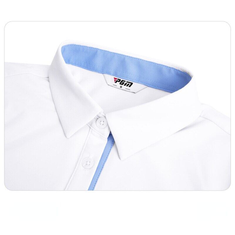 Product Description Brand PGM Item No. YF486 Name Ladies Solid Color Short Sleeves Size S/M/L/XL Color White, light blue, purple, navy blue Fabric 92% polyester + 8% spandex product description Functional sports fabric, skin-friendly and comfortable, free to stretch.