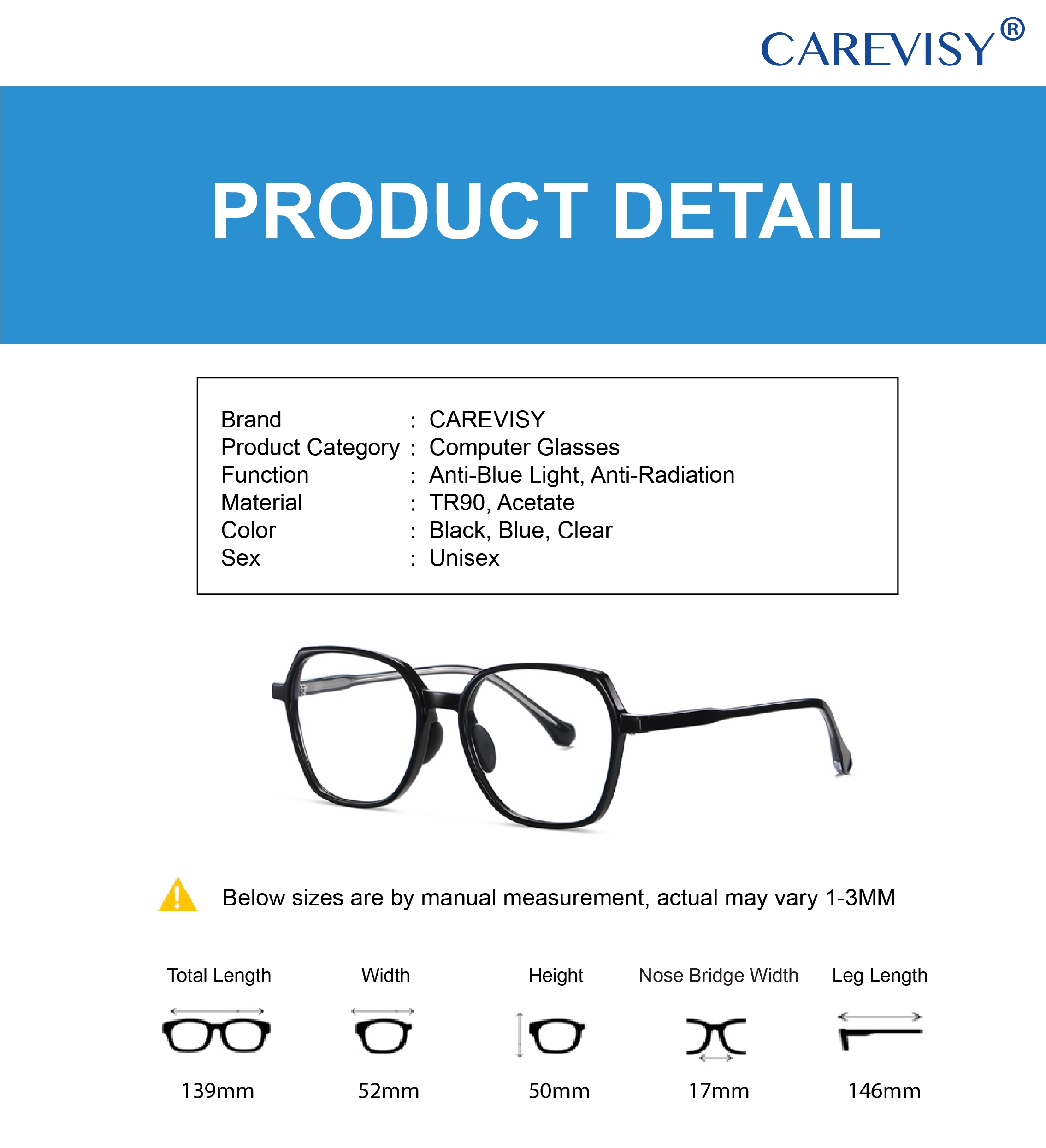 Welcome to CAREVISY, a professional Eyewear brand. We provide high quality Reading Glasses, Computer Glasses, Sunglasses and other Eyewear Accessories at affordable prices based in Singapore. Customer's satisfaction is our top priority. We valued customer's time and we will post out your order by next day. Afterwards, logistic team will pick up your parcel and delivery it to you, expected delivery time by logistic team is about 1-2 working days. Feel free to contact us if you have any queries. Care for your vision and enjoy your shopping now!