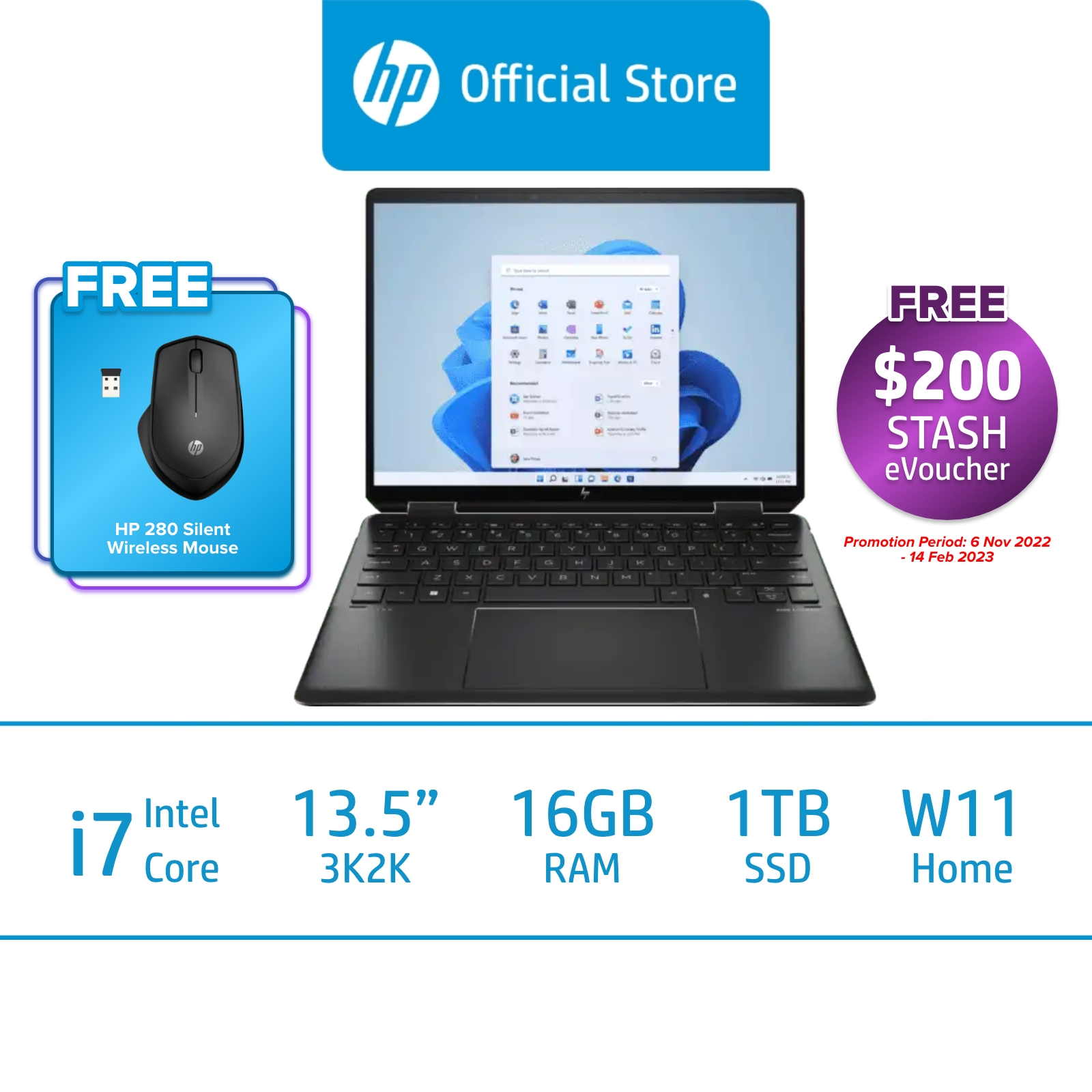 HP Spectre x360 2-in-1 Laptop 14-ef0056TU / Intel Core i7-1250U / Intel Iris X Graphics / 16GB RAM / 1 TB SSD / 2 Years ADD / 2 Years Onsite Warranty