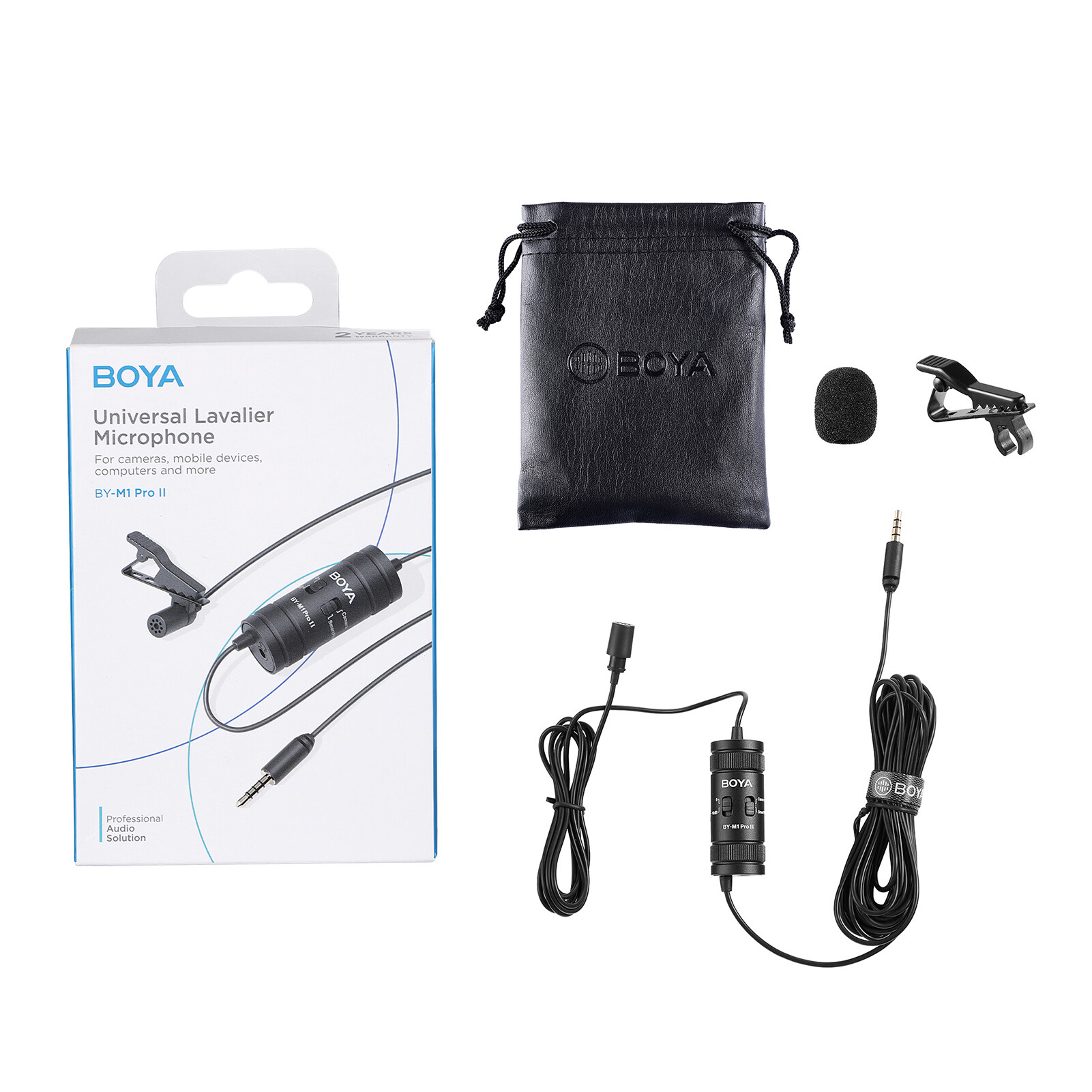 BOYA BY-M1 Pro II Universal Clip-on Microphone Omni-directional Condenser Lapel Mic 3.5mm TRRS Plug 6M Long Cable Plug-and-Play for Smartphone Camera Camcorder Audio Recorder Computer