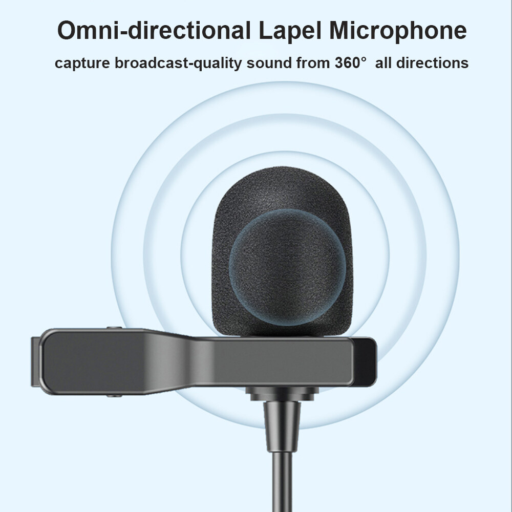 【Omni-directional Lapel Microphone】With a omnidirectional capsule inside, the clip-on microphone can capture broadcast-quality sound from a 360° range and delivers it to your recording device via its 6m long cable.