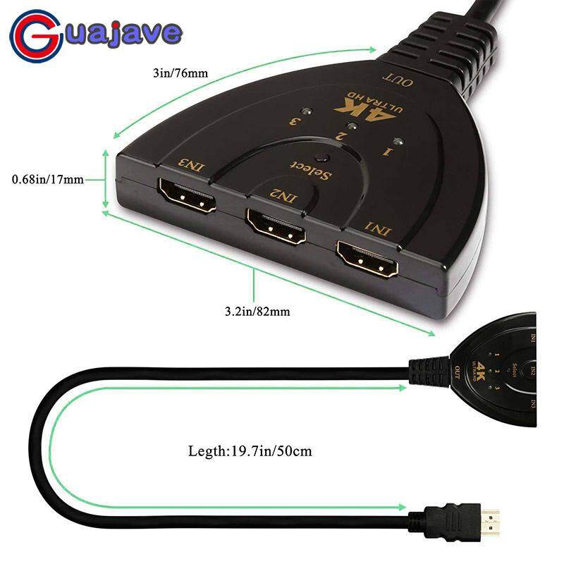 Guajave 3 Port HDMI Switch Splitter Cable 4K*2K 2160P Multi Switcher HUB for LCD HDTV PS Xbox