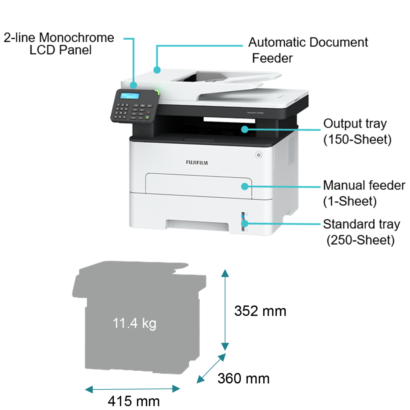{NEW MODEL} Fujifilm formerly Fuji Xerox, ApeosPort 3410SD A4 Monochrome Multifunction Laser Printer (Print, Scan, Copy, Fax)