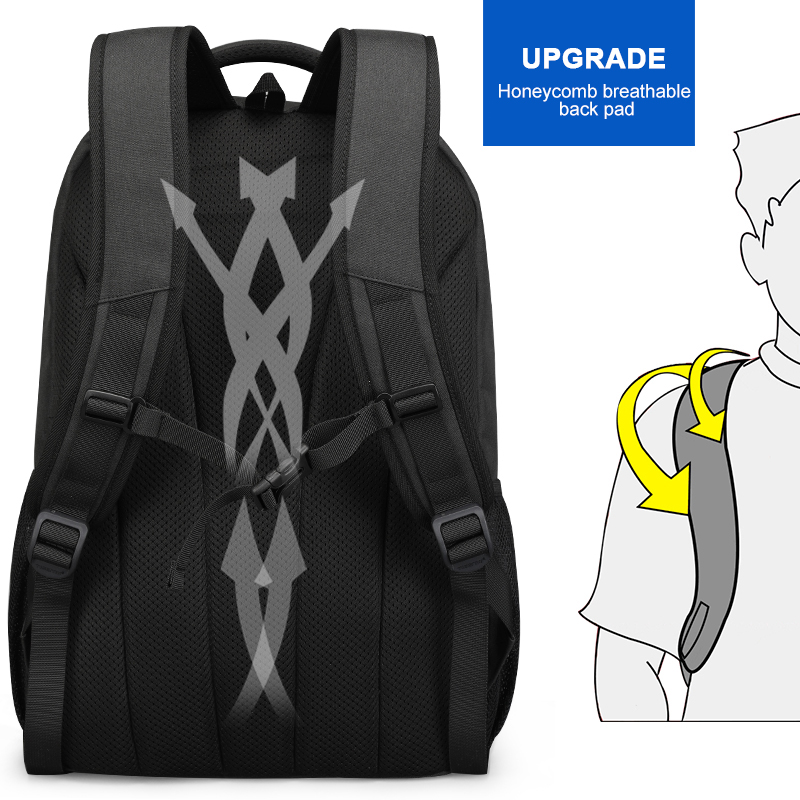 1.Large capacity2.High quality & Waterproof3.Rapid external USB charging port4.Reflective stripe design5.Honeycomb breathable back pad