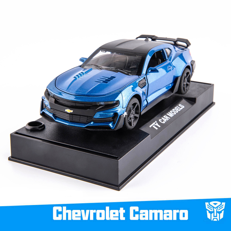 Name: Bumblebee CamaroColor: red, black, yellow, blueMaterial: Alloy PlasticProportion: 1:32Control method: pull backFeatures: Lights and music, The door can be openedProduct size: 16 * 6.5 * 4.6cmApplicable age: ≥3 years oldPackaging: Color box / no color box