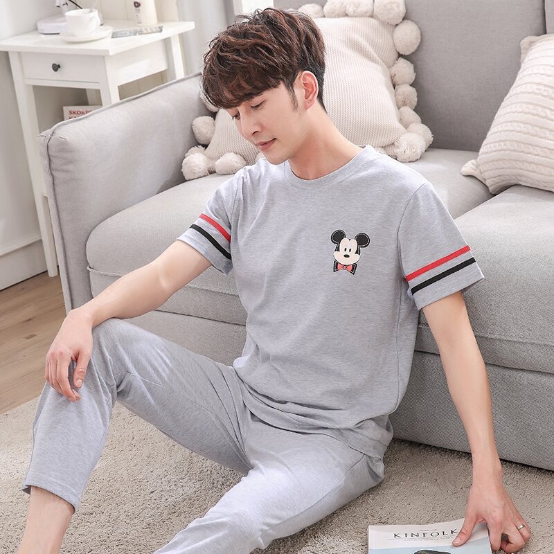 Good Goods Men's Pajamas Summer Cotton Thin Pajamas Men's Summer Short-Sleeved Trousers Purple Non-Pilling Spring Homewear