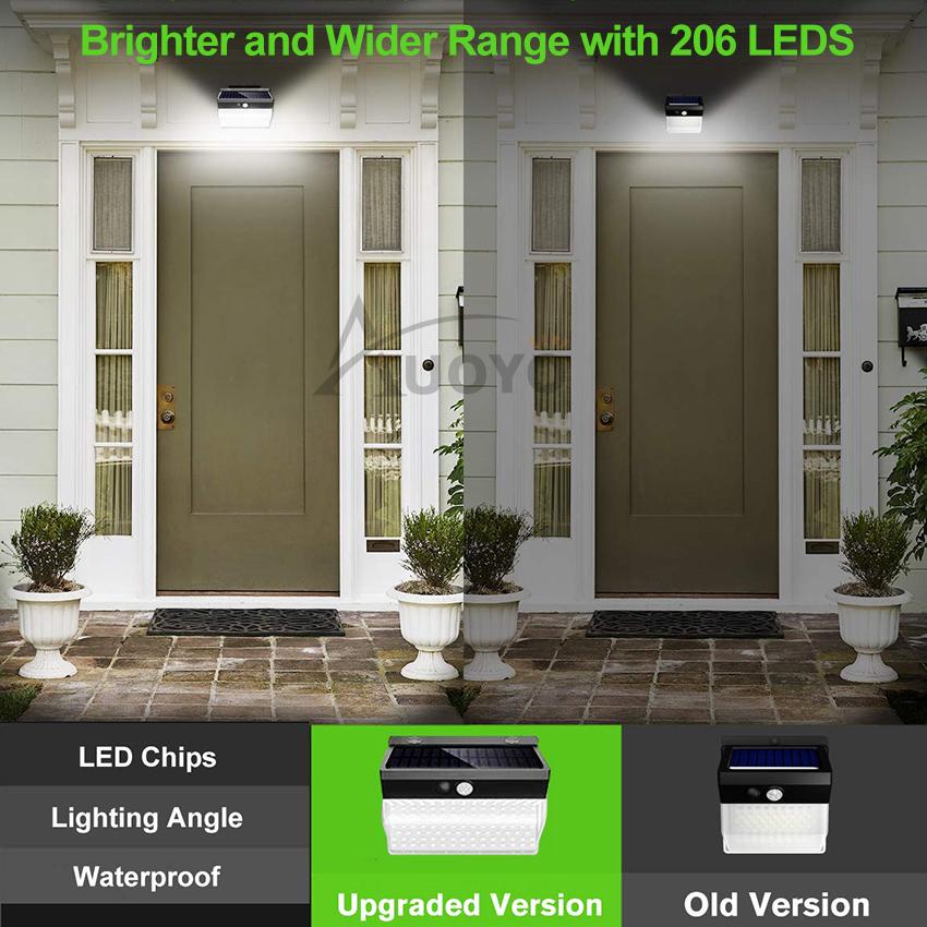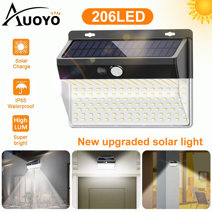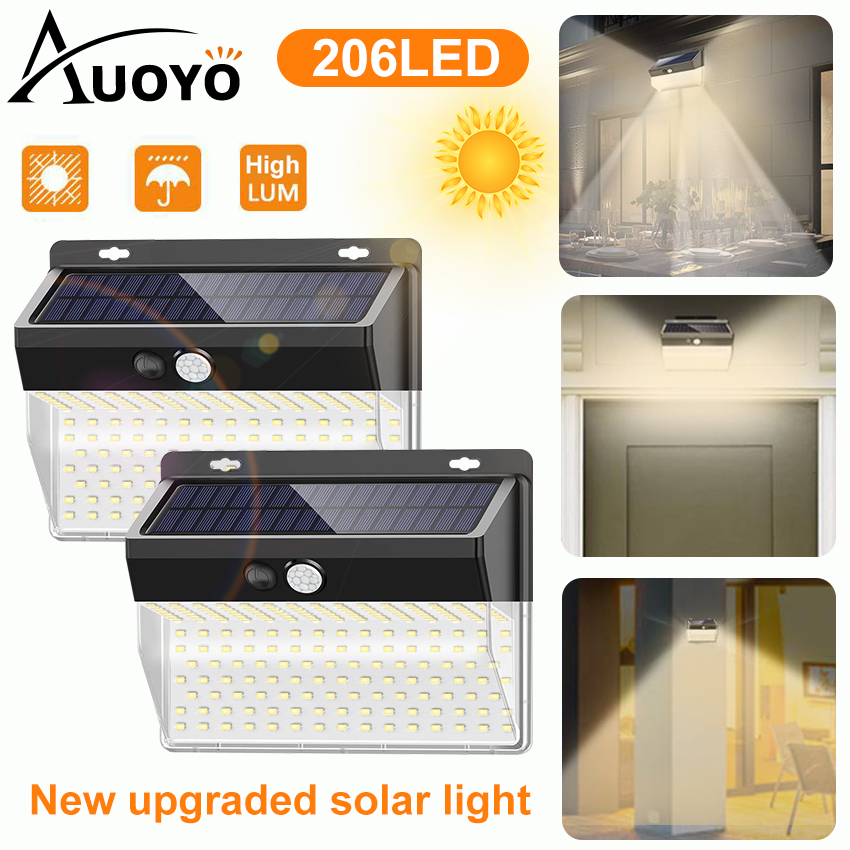 Auoyo 206LED Outdoor Lighting Solar Security Outdoor Lights Solar Lights 270° Wide Angle Lighting Solar Motion Sensor Lights Wireless Waterproof for Yard Garage Deck Pathway Porch