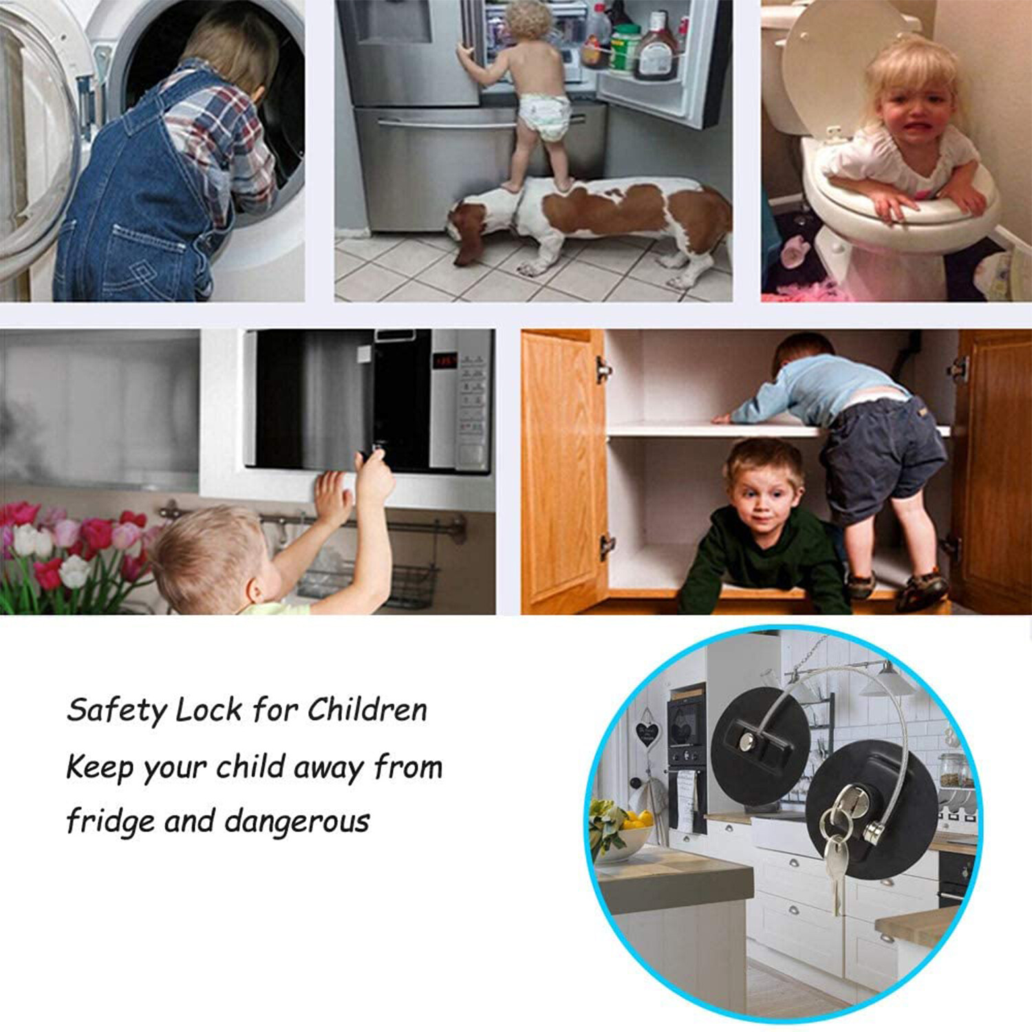Use as fridge lock (refrigerator lock), freezer lock, cabinet lock, drawer lock, cupboard lock, health care security lock. Also for oven, wash machine, closet, printer tray, paper tray, toilet seat, waste bin, door and more.
