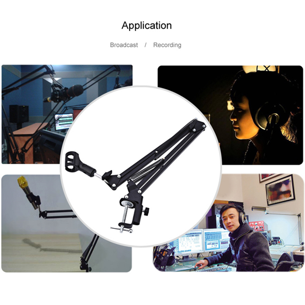 eDSLRS Adjustable Microphone Stand Suspension Boom Scissor Arm Mic Bracket Metal with Microphone Holder for Studio Recording Live Video Broadcasting Online Singing