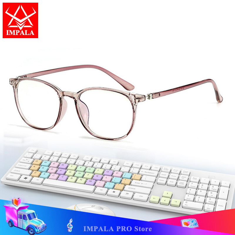 IMPALA FL1810W Fashion Anti Blue Light Eyeglasses for Men and Women Spectacle Korean Style Filter Eyeglasses Blue Light Block UV400 Anti Blue Ray Protective Eyewear With Glasses case